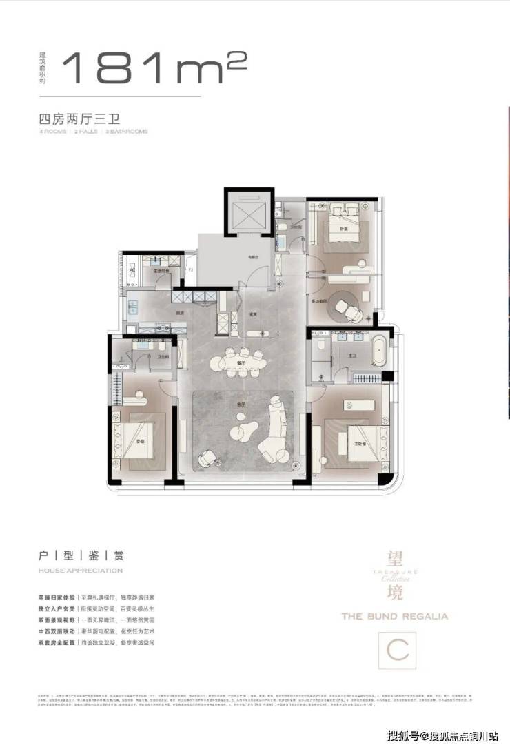 外滩玺总建面约8.3万方,容积率仅为2.98,为22—28层舒适高层,产品面积段为建面约180—244平精装房源,可售房源仅186套。