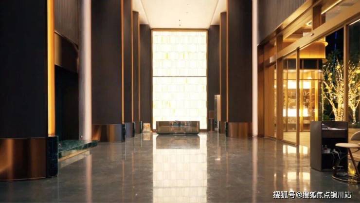 楼栋外立面采用大量高反玻璃和铝板设计,局部装饰线条和香槟金铝板的造型尽显时尚。小区内部打造了从负二楼到一楼共三层酒店式入户大堂。