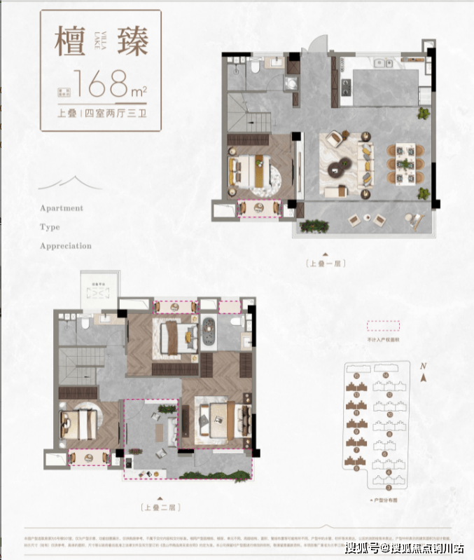 静美墅居(叠墅):建筑面积约165-236平方米。
