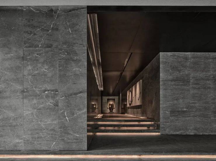 园区选材也非常苛刻,帝王黑、整块台阶石头、造价昂贵的福鼎黑、铜制精工门,都被人工镶嵌在了园区。
