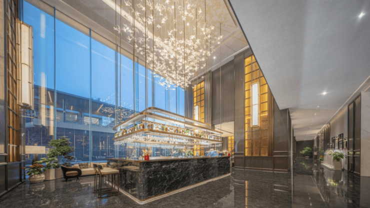 ①在生活营造层面,越秀·天悦江湾展现出越秀地产第一梯队的追求。约2600㎡酒店级会所与约1200㎡下沉庭院构成双核配套体系。前者通过健身房、双私宴厅、业主餐厅等定制化服务,重构社区社交场景;后者以“水晶流瀑+镜面水境”的立体景观,搭配从江苏全冠移植而来的精品丛生乌桕,打造出郑州罕见的沉浸式自然剧场。这种将公共空间转化为“生活发生器”的思维,正是营造美好社区生活的具象化表达。
