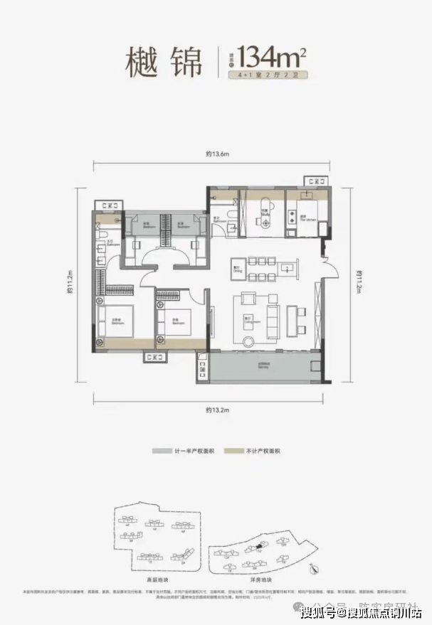 建面约134平 4+1房两厅两卫:小高层户型,南北通透,四开间朝南,户型设计很赞,南向阳台很大,还做了横厅,可以做成五房。