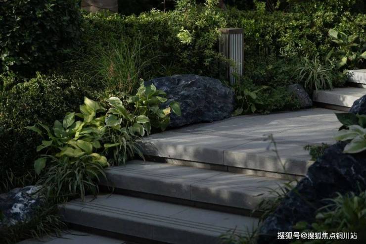 穿过门庭,踏上一段曲折回转的连廊“水流云在”,所谓欲扬先抑,以连廊作为大门与主景空间的情绪过渡,围合成一方天井与锦鲤池,似是桃花源中“山有小口,仿佛若有光”的另一种呈现,正是克制内敛的东方意境表达。但情绪虽“抑”,景观细节的呈现却丝毫未减。