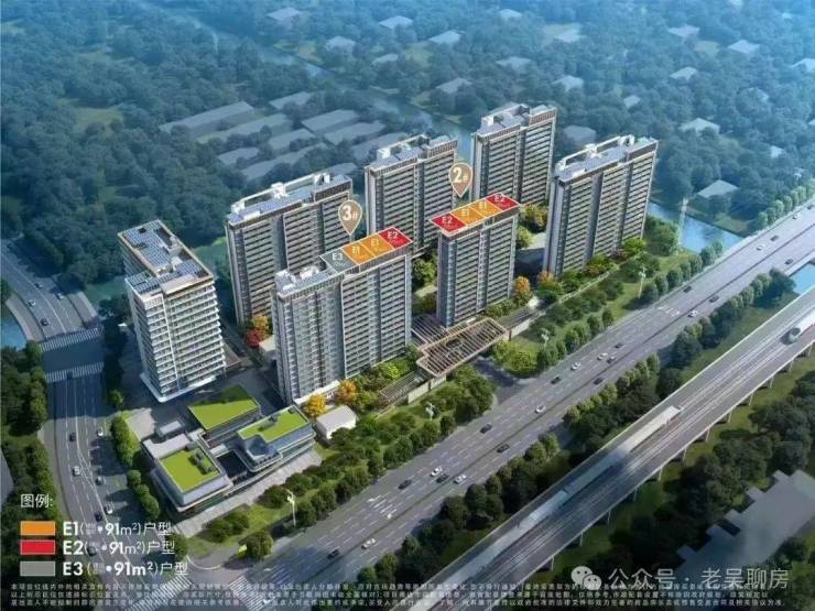 占位上:整个社区的北侧与东侧双面环水、西侧是商业,不止有繁华的城市街景,更有滨水风光,光这个社区的占位和天赋,就已经足够出色。