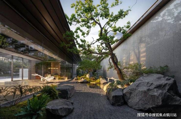 保利·明州瑧悦将中式园林凝练成景,这处是《溪山图》里的叠瀑,那处是倪瓒笔下的枯山水……