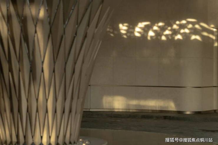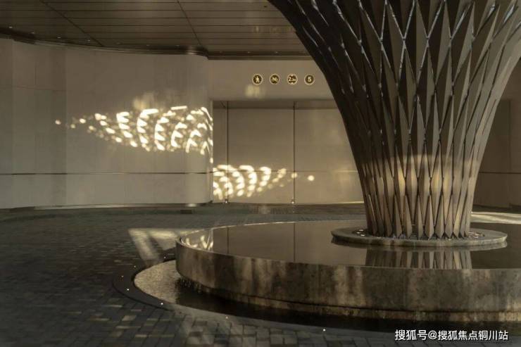 The entrance features a hotel-style roundabout drop-off area, with an art installation symbolizing "the four great gatherings under heaven" set at its center. This not only presents a noble and ceremonial facade for returning home but also echoes the golden pool base crafted with Suzhou fan craftsmanship.