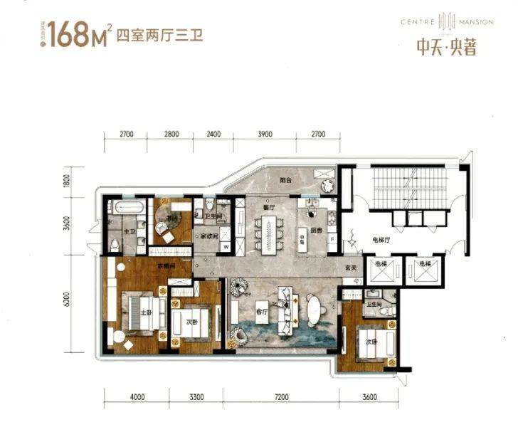 在户型设计上,中天央著同样独具匠心,推出121㎡三室两厅两卫、143㎡三室两厅三卫、168㎡四室两厅三卫,三种臻稀户型 ,满足不同客户的需求。