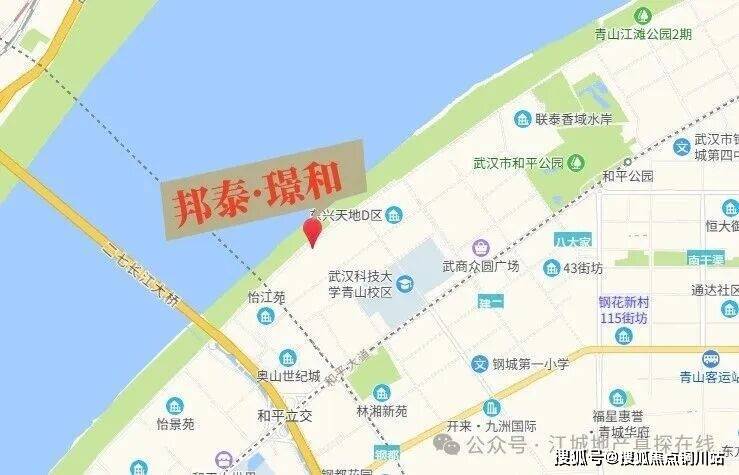 邦泰·璟和坐落于武汉青山区临江大道与三弓路交汇处,是青山滨江板块中兼具景观稀缺性与交通效率的关键地块。项目直面长江,拥有连续、开阔的一线无遮挡江景界面,这使其显著区别于传统城区内部楼盘。同时临江大道的城市主干道属性,也为项目带来了快速通达的交通优势,实现了“观江”与“出勤”的双重价值。