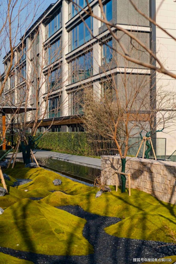 社区园林景观设计独具匠心,以 “凌青山 伏幽谷” 为整体布局规划,将建筑依山而建 。入口落客庭院以原山石的大块布局,一株乌桕树与石相契,枝繁叶茂,为业主营造出宁静而又温馨的归家氛围。一路前行,崖石溪涧分布两侧,山居、自然、植物互相交融,浑然一体。倾泻而下的景观瀑布,利用天然的山体高差打造,溪水潺潺流淌,与建筑、山石、树木自然地结合在一起 。业主站在观瀑平台眺望,能在激荡的水瀑和茂密的山林中体悟与山无界的状态。社区内还种植了大量的天然林木,直立挺拔的杉树林与河桦林撑起山的气势,墨西哥落羽杉、源自于北美密西西比河沿岸的河桦树种等,为社区增添了更多野趣 。前庭院地面小块砖选用来自福鼎黑小料石,通过匠人师傅手工敲制而成,再逐一铺设,彰显出品质与细节。示范区内的高湖石,全部产自于仙都风景区,其厚重的白灰色调与自然流畅的肌理相得益彰,赋予极致的视觉享受。