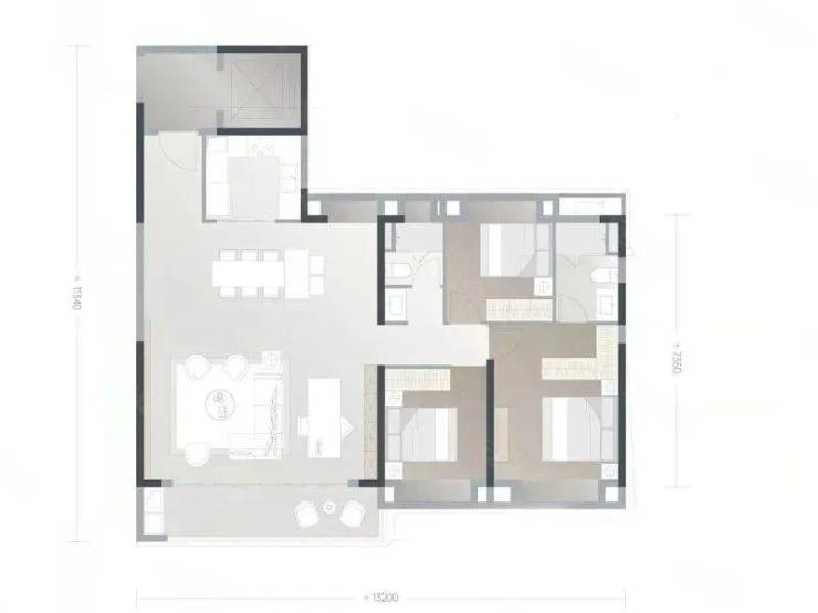 建面约129平,三房两卫户型。
