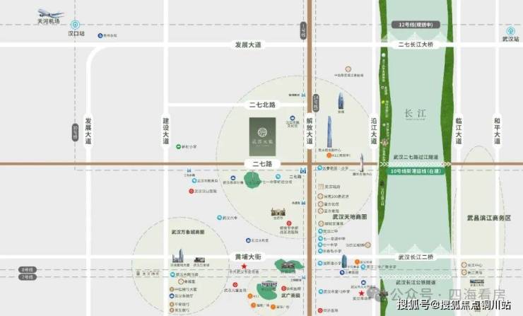 以长江二桥与武汉天地为核,二七滨江豪宅区初现雏形。