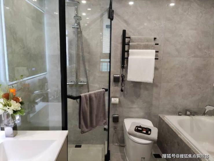 厨房也受到参观人群的特别关注,整体收纳方便,水槽更是特别,采用了圆角设计,卫生无死角。主卫采用套房设计,有双卫浴及智能马桶,配置高端。
