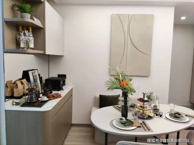 进入实体样板间,首先映入眼帘的是大气的玄关柜。不同于国内常见的中间一段敞开平台设计,考虑到这一段敞开台面后期往往反而成为杂物堆放处,影响进门的观感,大和玖越采取了不同的设计思路。