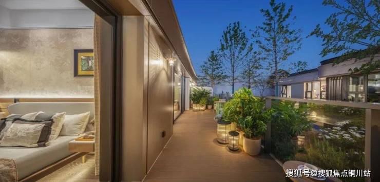 中建·太泽之星| 藏湖空中庭院约3.3米超大进深(建面约240㎡户型),相较于传统阳台的短进深,可同时容纳休闲区、绿化区、功能区的复合布局。