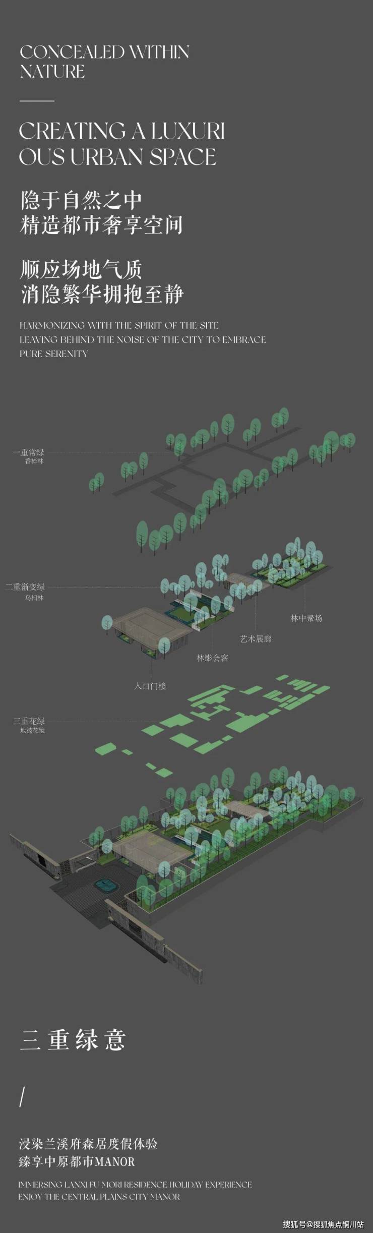 郑州北龙湖·兰溪府项目以“臻隐森居”为设计理念,打造森系植物价值社区 + 臻奢酒店价值社区,为城市精英阶层营造臻奢品质的森居度假体验。