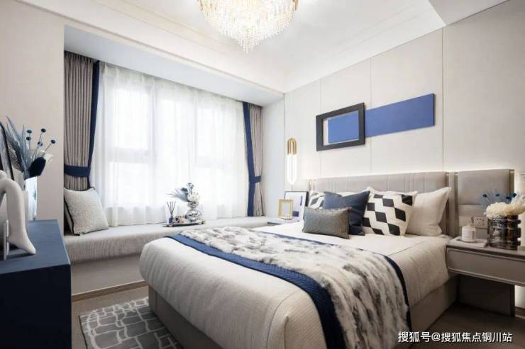 110㎡户型打造了三室两厅两卫,两个南向卧室都带飘窗,中间镶嵌着大横厅外接阳台,把视野优势利用到了最大化,主卧自带一个步入式衣帽间,妥妥是豪宅般的享受。