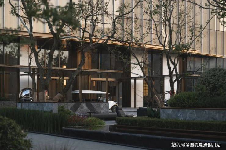 ▼光怪陆离的树影下,涌泉跌水,矮墙花台,一草一木、一静一动皆是奢雅而又放松的写意画面。