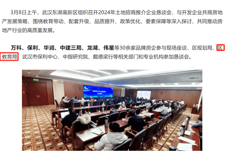 2024年的东湖高新区的土地推介会,教Y局参会!这无疑在释放一个信号,来拿地吧,教育上的短板,不存在的。