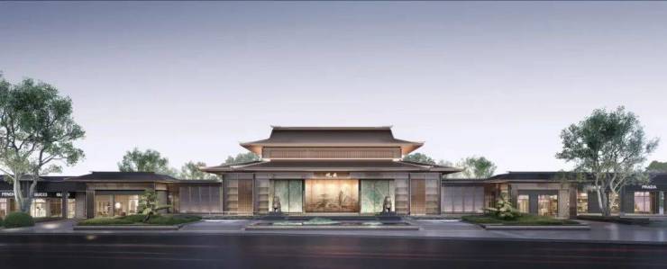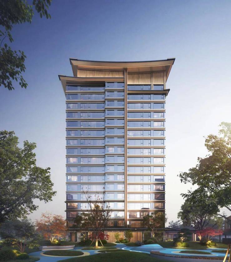 建筑立面取形于宋式宫殿阁楼,新中式风格,飞檐造型,别具一格。