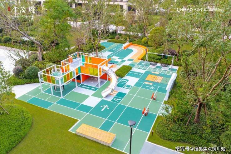 不仅如此,中央区域更是打造出一个大空间、大场景的核心区景观,创造一整个美好生活场域,门前的游乐场让孩子们尽情享受玩耍。
