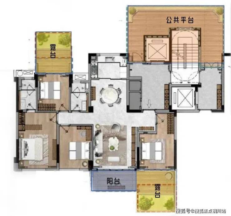 以 148㎡奇偶数层户型图为例,若剥离露台与公共平台部分,其平面布局即为典型的南北通透四房结构,动线与功能分区均延续了传统户型的成熟框架。
