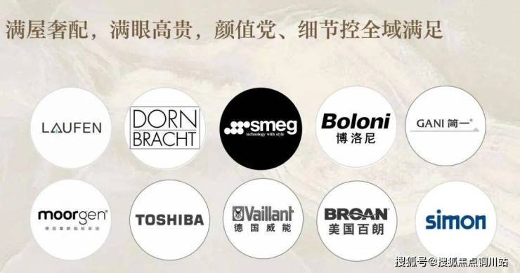 全系百年瑞士名牌劳芬卫浴、号称龙头届劳斯莱斯的当代洁具、博洛尼定制全屋柜体、欧洲贵族品牌斯麦格厨电等。