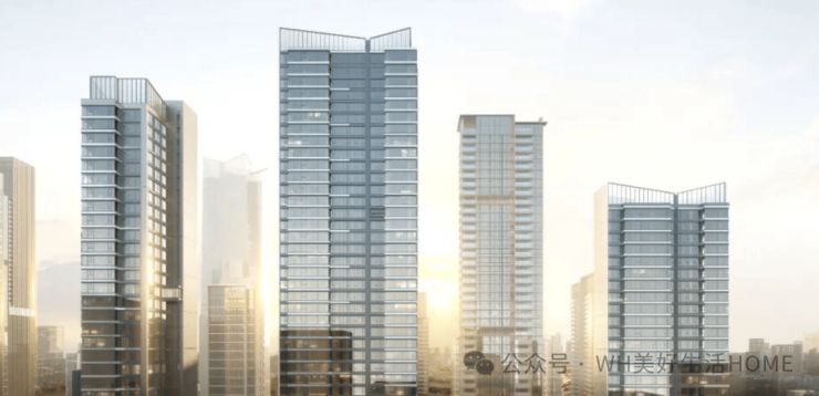 住宅建筑设计由上海柏涛执笔,采用双银镀膜玻璃幕墙搭配浅香槟金色和深灰色铝板,未来在不同的光照条件下,将呈现出不同的光学之美。