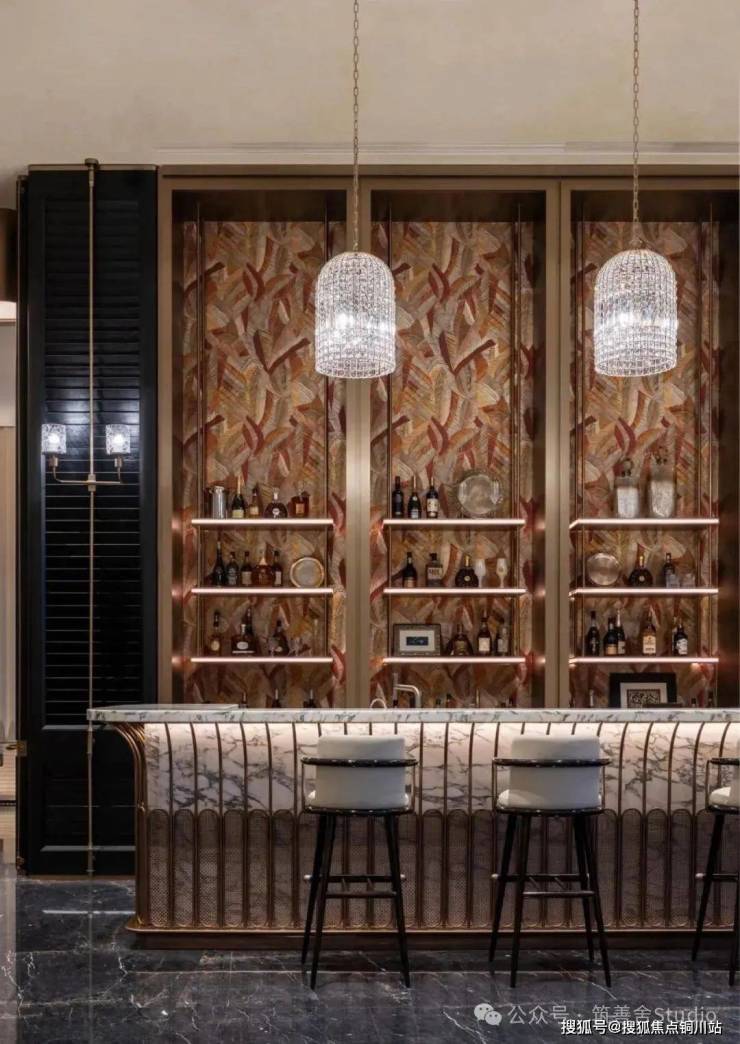 泳池区域,无疑是古琦黑应用的璀璨篇章。池畔与步道均以皮革装饰,古琦黑在此铺展,赤足踏于其上,既能感受到石材自带的清凉,又能享受到步履间的稳重与舒适。材质与感官体验在此刻达到了和谐共鸣的境界。