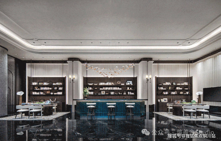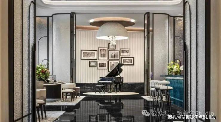 下沉式会所,地面铺设与售楼处一致的珍贵石材,以不变的品质,奠定艺术与生活交融的基石。随着琴键的轻敲,跳跃的音符与地面细腻的纹理共鸣,宛如黑白琴键间流淌的旋律,交织出生活的和谐乐章。