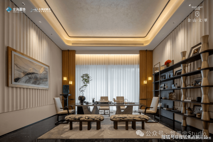 茶室,喧嚣中的一方净土,深邃的墨色纹理铺陈出茶道的静谧氛围。洁白如晶的纹路,犹如轻纱缭绕,淡淡的茶烟在宁静的空间中晕染出柔和的光晕,为这片空间注入了温润的气息和悠扬的韵律。