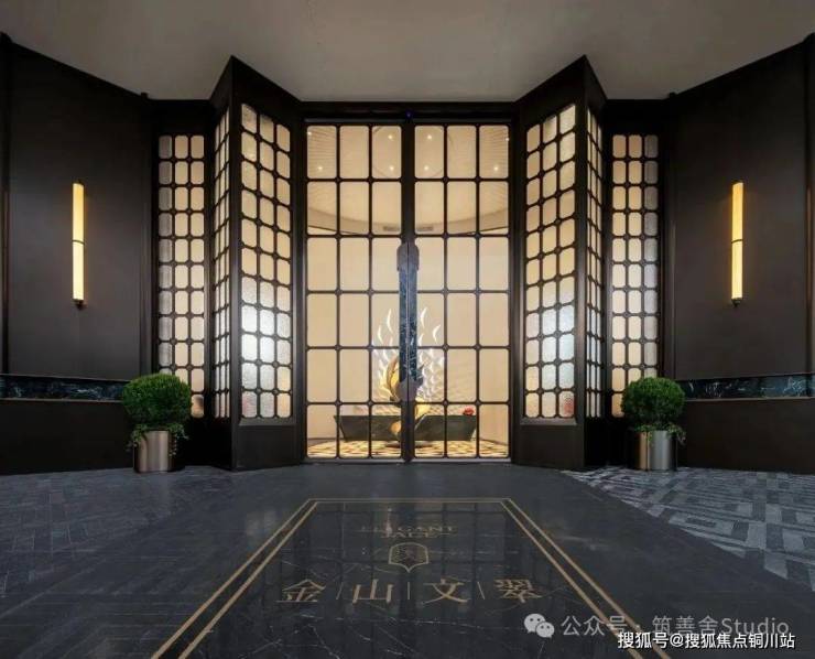 迎宾水景中的“百鸟朝凤”纯铜雕塑,以马达加斯加蓝翡翠奢石为底座,细节之处如门把手的凤翎纹绿奢石镶嵌,无不彰显其用心之深。