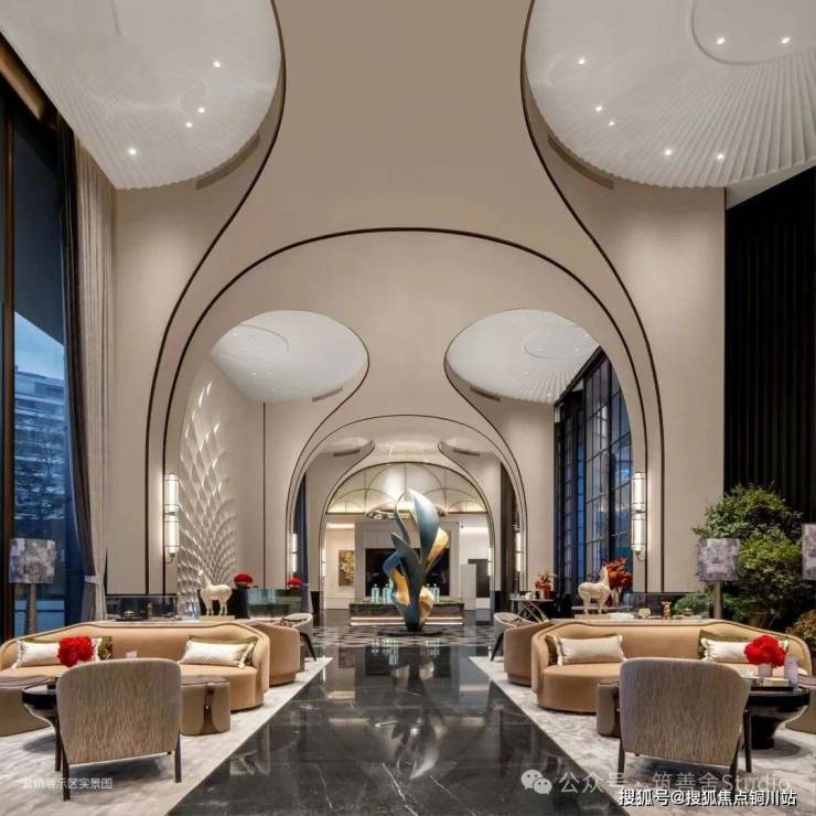 作为空间的迎宾序章,接待大堂注重仪式感,地面铺设着精致巧夺天工的拼花图案,犹如一幅动态的画卷,渐次引领宾客的目光。细腻的花纹与光影错落交织,营造出一种宁静而尊贵的气氛,每一步行走都仿佛是在历史长河中留下的深刻足迹。