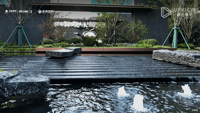 比如,整个社区围绕“峯谷泉涌”的灵感设计,“两条一式轴线”的打造,小区呈现了多样水景,将特色水景和庭院式归家通过林下情绪转化空间连接到社区环道上,漫步在小区,聆听潺潺水声,治愈极了。