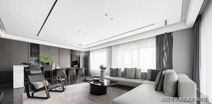 奢侈品店同款入户雨棚、大理石地砖、大块陶瓷薄板墙面、充满高级感的艺术木饰面……还有水吧、洽谈会客区、桌球室等功能设计,这些全部都是真金白银的投入,这样的架空层设计,比市面上一般“豪宅”项目住宅装标都要高。