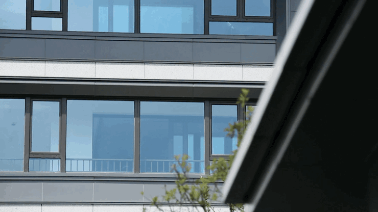 滨江玺采用了成本极高的公建化立面设计,整体呈现高级灰的主色调,材质方面大面积采用“石材+铝板一体板”,不仅颜值美的让人愿意“面壁思过”,而且这样高级的立面材质目前南通市面仅此一家。