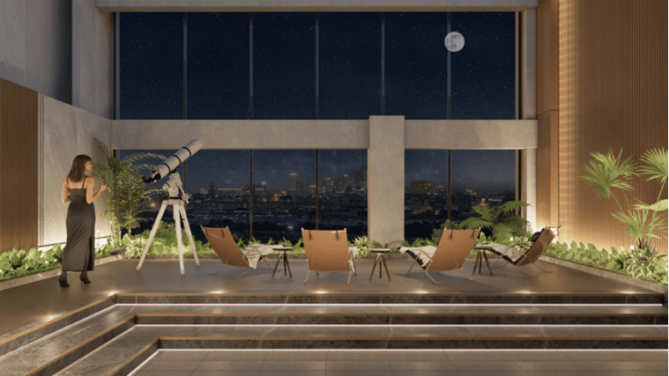 ▷ 空中「棠影荟」:林下会所连廊,咖啡阅读区与无屋顶观星台并存