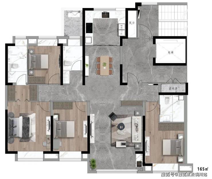 建筑面积约165m² 珠玉 四室两厅三卫