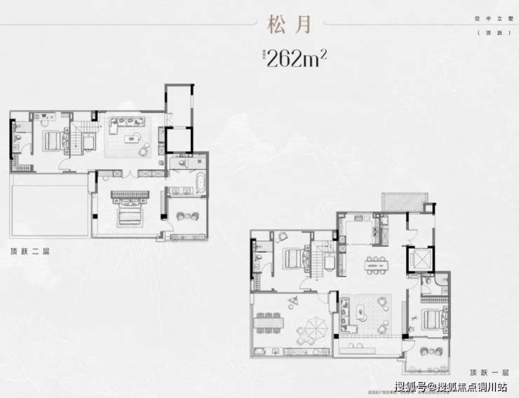 顶跃—【空中立墅】户型建面约262㎡、346㎡,可观山,南向采光无遮挡,带大露台,价格是全小区最贵的,要卖上5w+ ,预计1500-1600w一套;