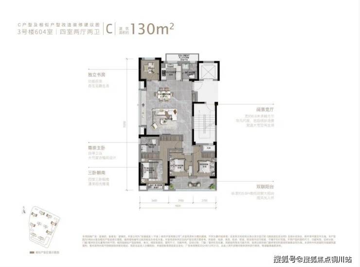 C户型|建面约130㎡ 四室两厅两卫
