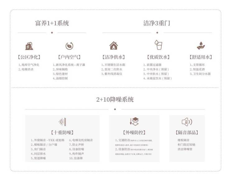 从无感人行、社区安全、智慧检测到老幼关怀,创建7+智慧社区,小区主入口道闸、单元地下大堂及首层可视对讲门口机采用人脸识别,高空抛物监控覆盖,营造一个安全、高效的智慧社区。从“空气、声音、湿度、用水、光照、园景”,建立6+健康住宅。