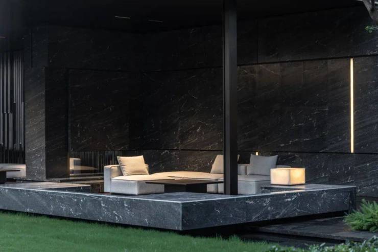 从约4米高石材高墙大院,到酒店式尊贵感的主入口、落客区,再到入户家水庭院、草坪漫步区、下沉庭院、中央会客厅归家风雨连廊全面贯穿,打造富有格调的生活品质。