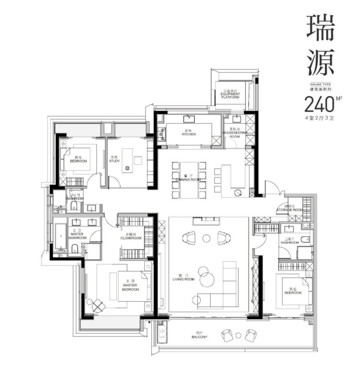 建面 240㎡户型:4 居室,分布于 5 号楼、3 号楼、9 号楼、2 号楼等,2 梯 2 户,层高 3.15 米,总楼层 16F,价格在 900-1000 万。
