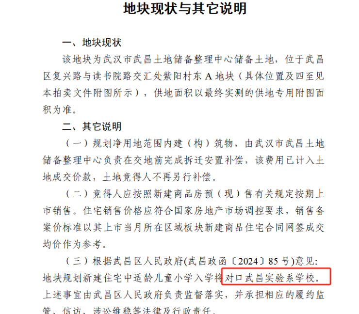 更让人感到意外的是,该项目在拿地时,土地出让条件就明确了对口学校情况: