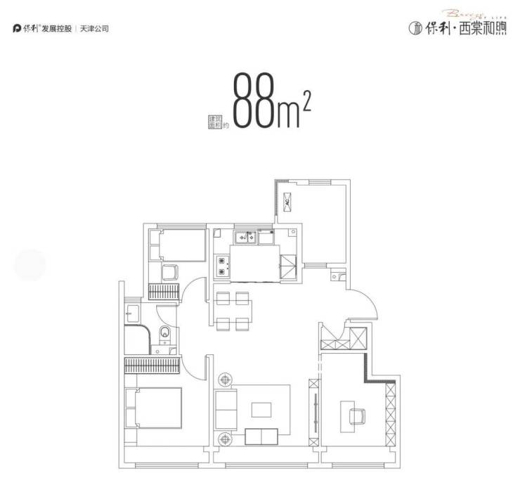 保利西棠和煦88㎡三居户型图