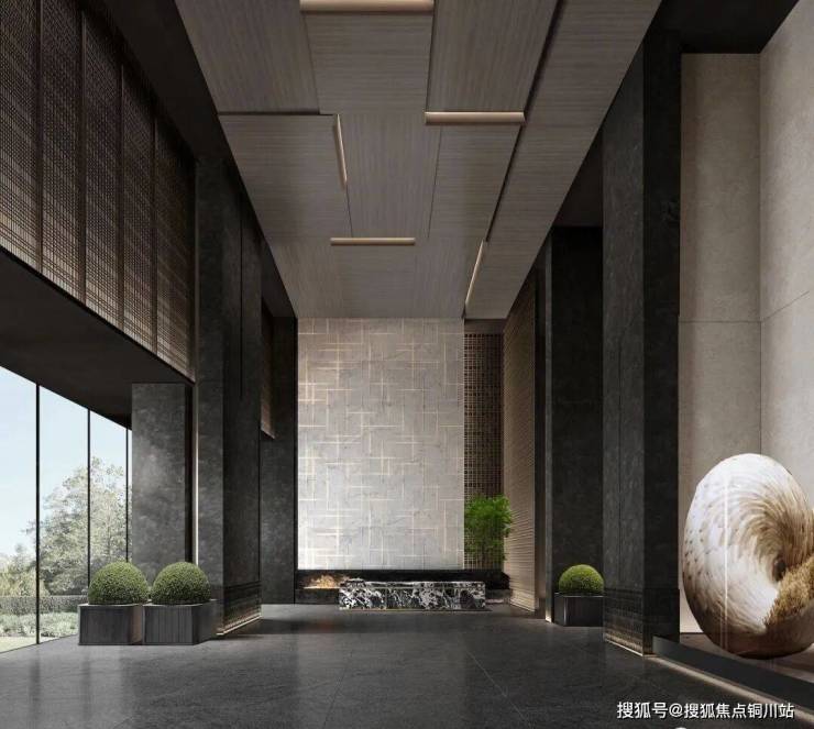从前场入口到酒店式大堂再到建筑内部,通过岩板铜雕长江之门、山水格栅、水幕屏风、康莱德酒店风格大堂、33种稀贵植物造境、大师落款“浪涛”雕塑等缓缓铺开,往来塔尖的礼序奢域,尊崇归家的每一步。