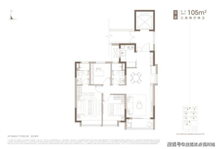建面约107平米户型,同样也拥有经典的S墙设计。三开间朝南,南北通透,动静分区,所有空间区域都能高效利用。满足三口之家的品质改善需求,完全没有问题!