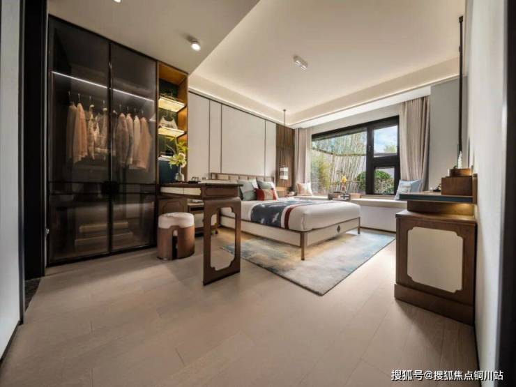 超大主卧套房,以市面上流行的小家化概念打造,集独立卫浴和宽景飘窗一体,圈成一个私密感极强的静谧居住办公空间。