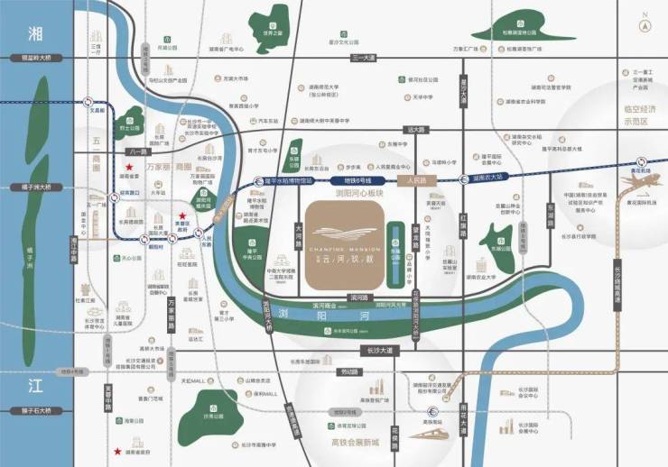 人民东路、红旗路等五大城市主干道;地铁六号线隆平水稻博物馆站、农科院农大站双地铁口,可快速通达高铁南站、火车站、黄花机场三大城市枢纽