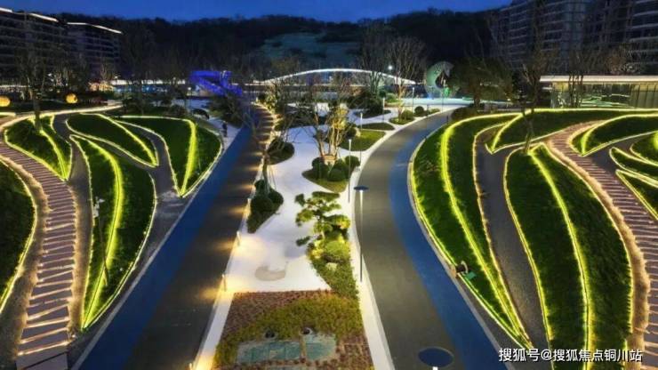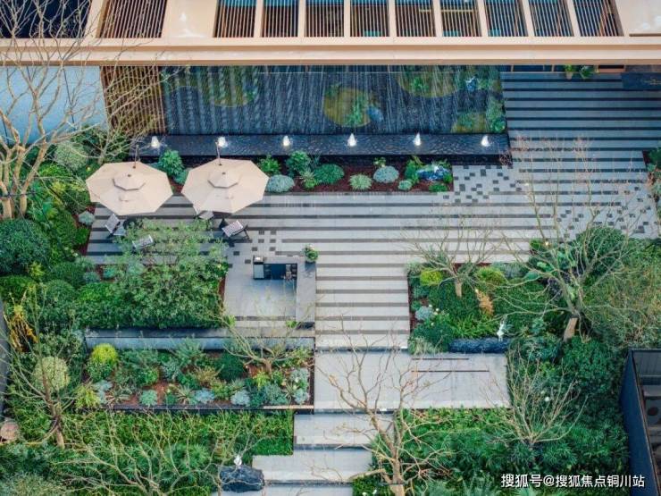 在玻璃围挡的外侧,那高低错落的景台,清脆悦耳的潺潺叠水,让这一份度假氛围感有了更为灵动的表达,未来这里也将会是业主南向回家动线的第一眼风景,以“流水之韵伴归家”的美好,打开诗意生活的第一页。