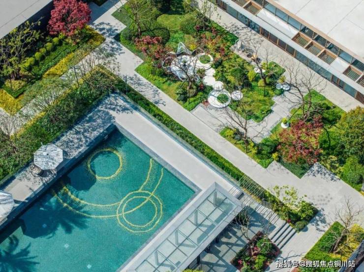 绿城产品体系内,泳池一直是园区的标配,在绿城春栖月颂,泳池得到了全新升级,成为一个被花园包裹的、充满度假风的【社交综合区】。